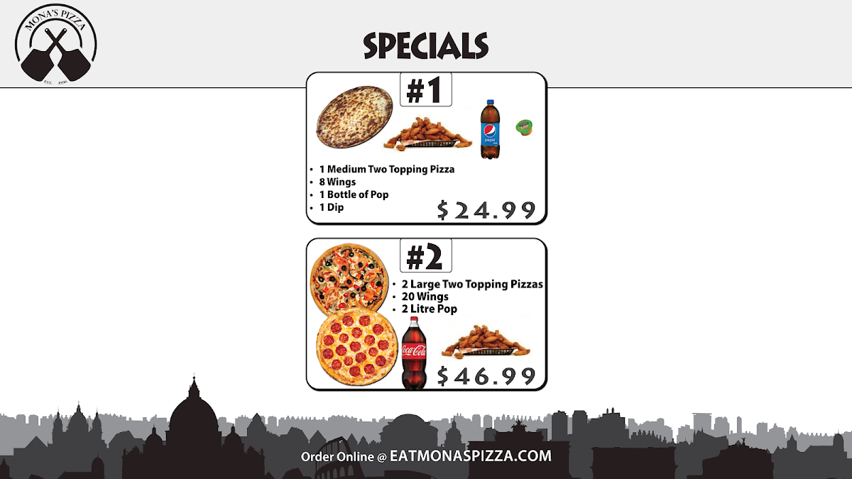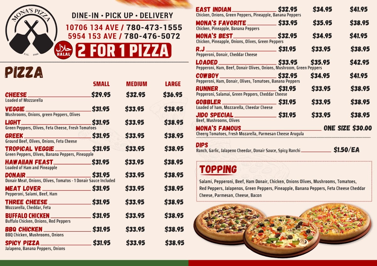 Nestled in the heart of Edmonton, Mona's Pizza Rosslyn is a culinary gem that promises a delightful experience for pizza enthusiasts and burger lovers alike. Known for its warm atmosphere and friendly service, this restaurant has garnered rave reviews for its crispy, flavorful pizzas featuring rich tomato sauce and fresh toppings. Customers rave about the chicken buffalo pizza and the highly acclaimed cauliflower crust pizza, which elevates the traditional pizza experience to new heights.